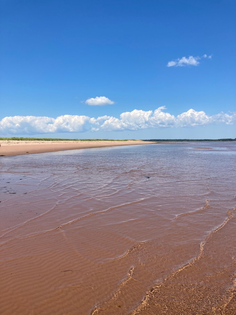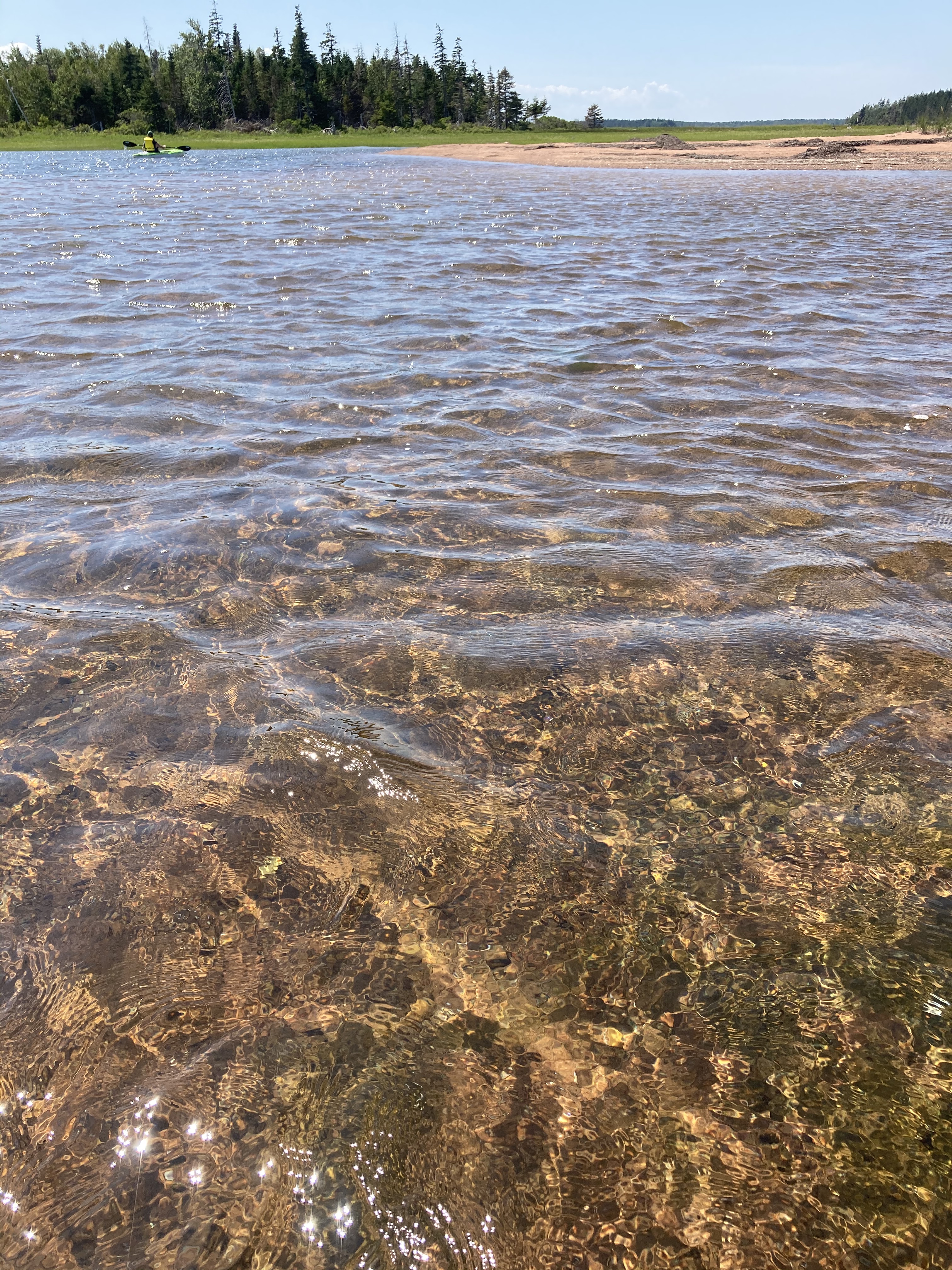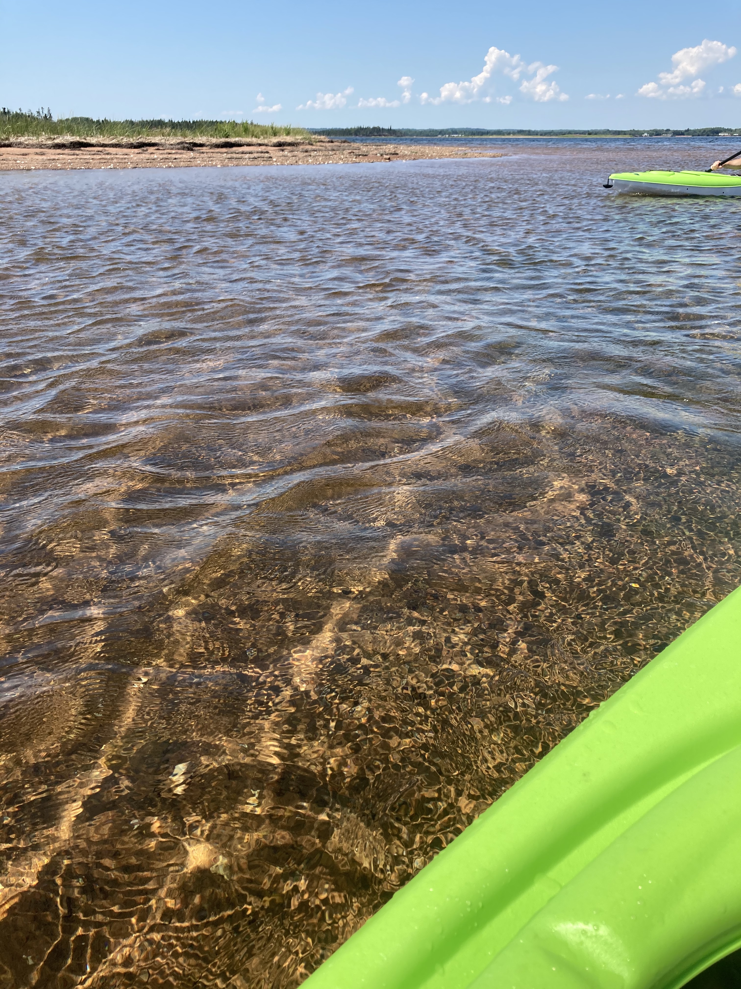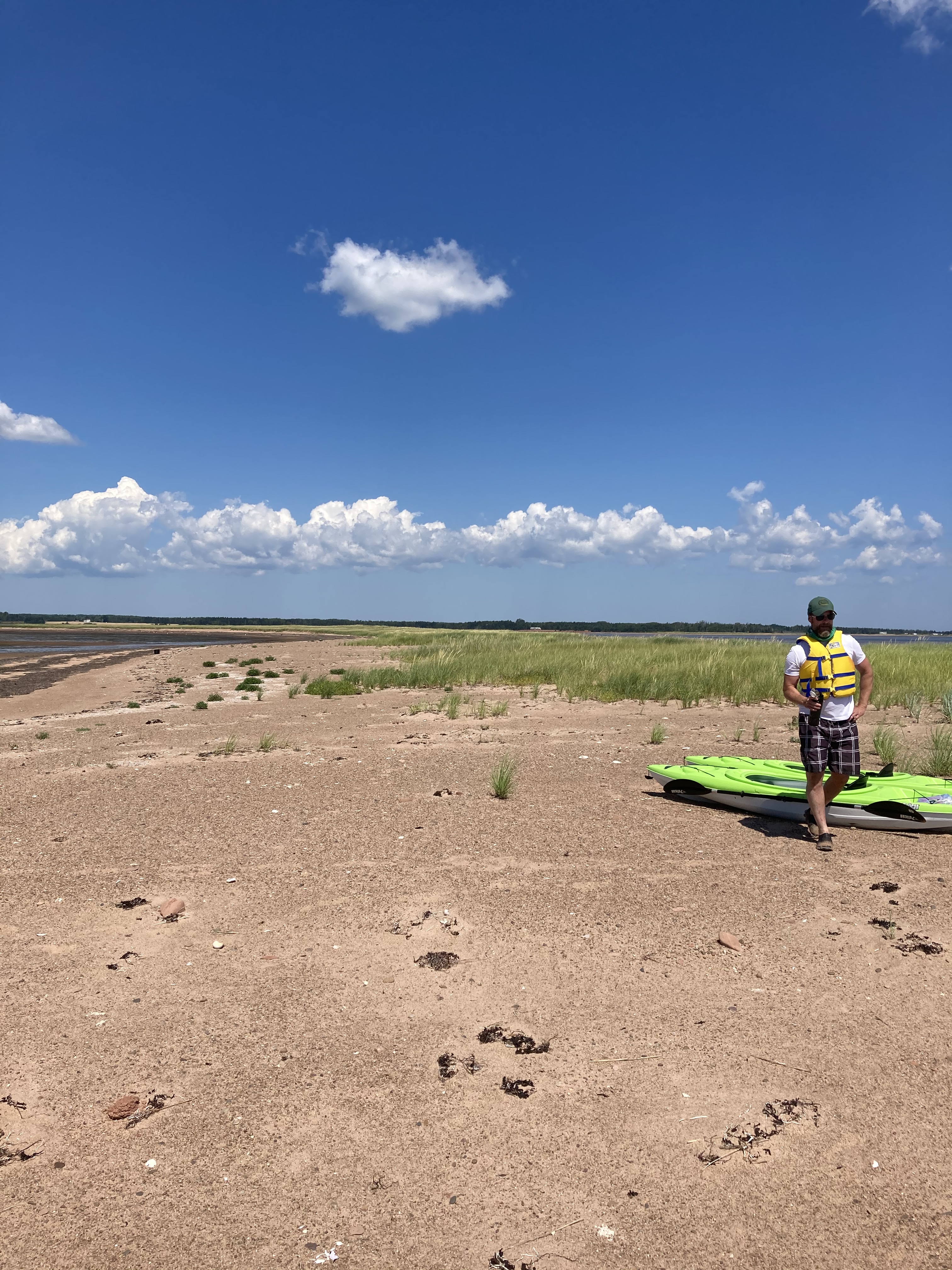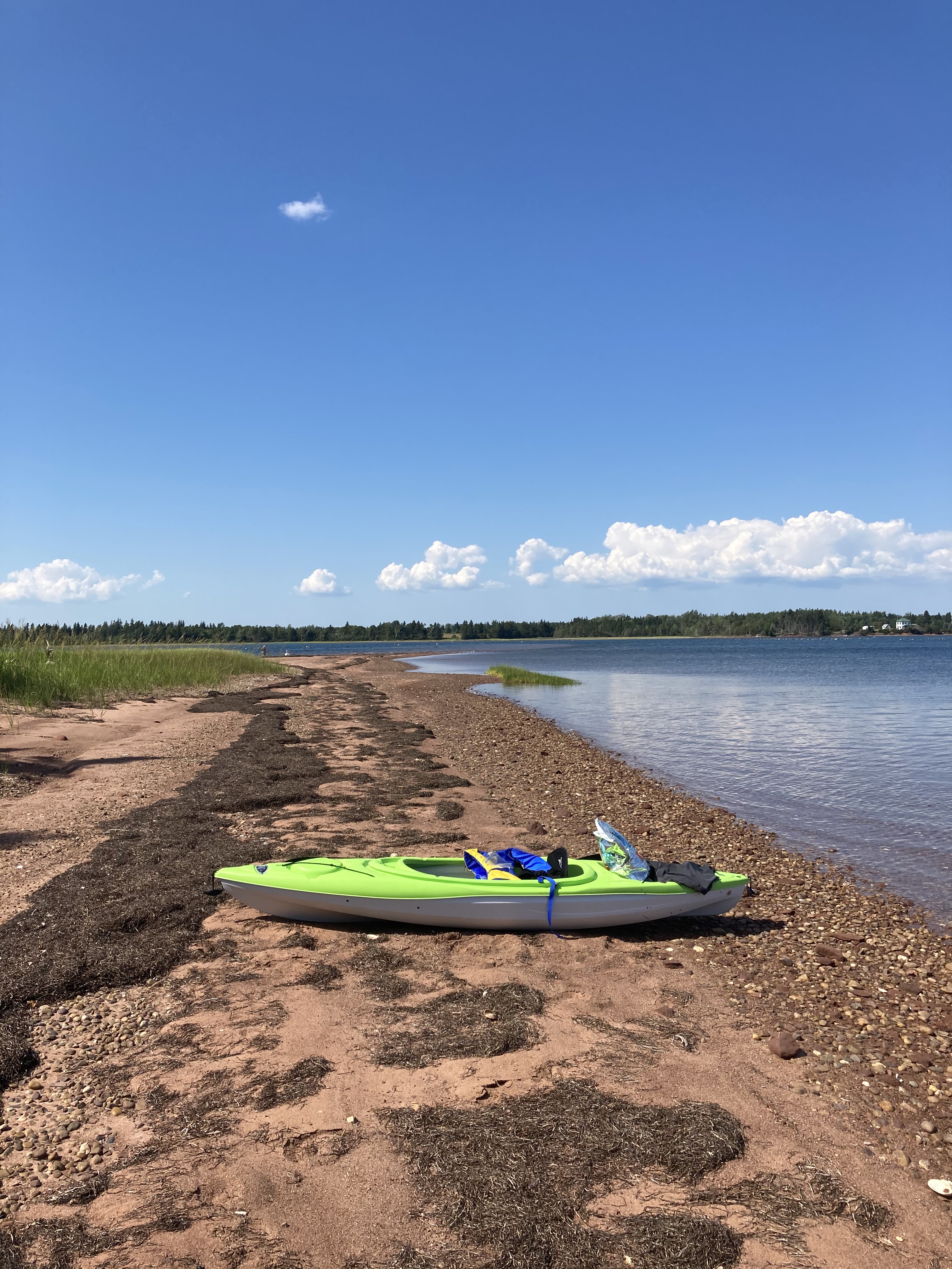 We put our kayaks in at the beach in front of my parents cottage called Beach Point. We paddle to the light house, came around the left side of the light house and crossed the channel to bird Island. This is the only spot that is a little tricky if not using a sea kayak. The channel is deep and also a through way for larger fishing boats to come in and out of Murray harbour. Its about a 5 min paddle and can be a little rough. Once you reach the closet point on the large sand bar you are once again sheltered.