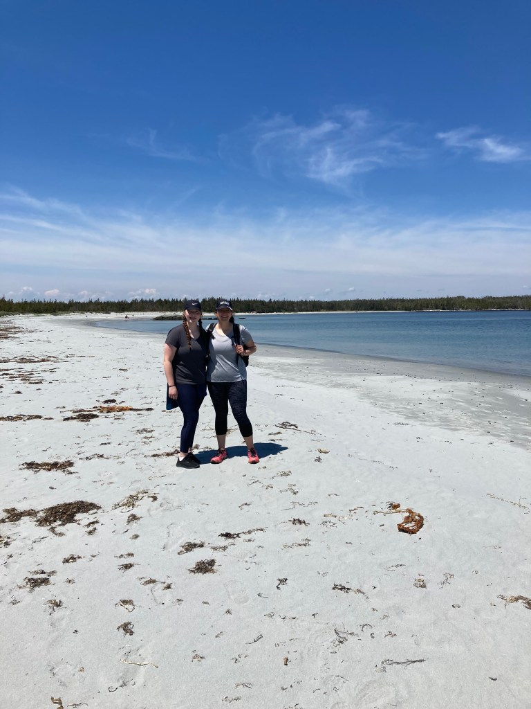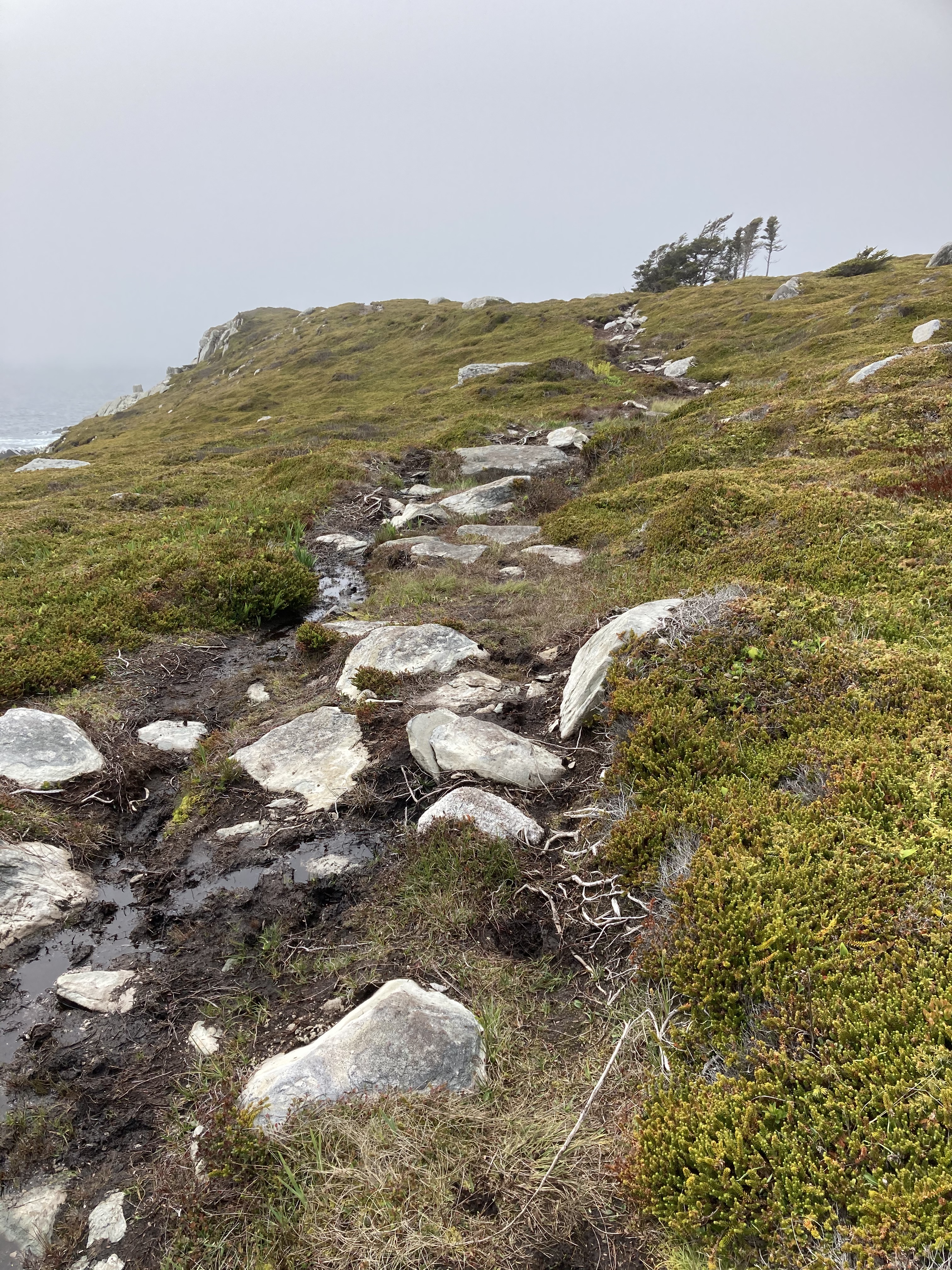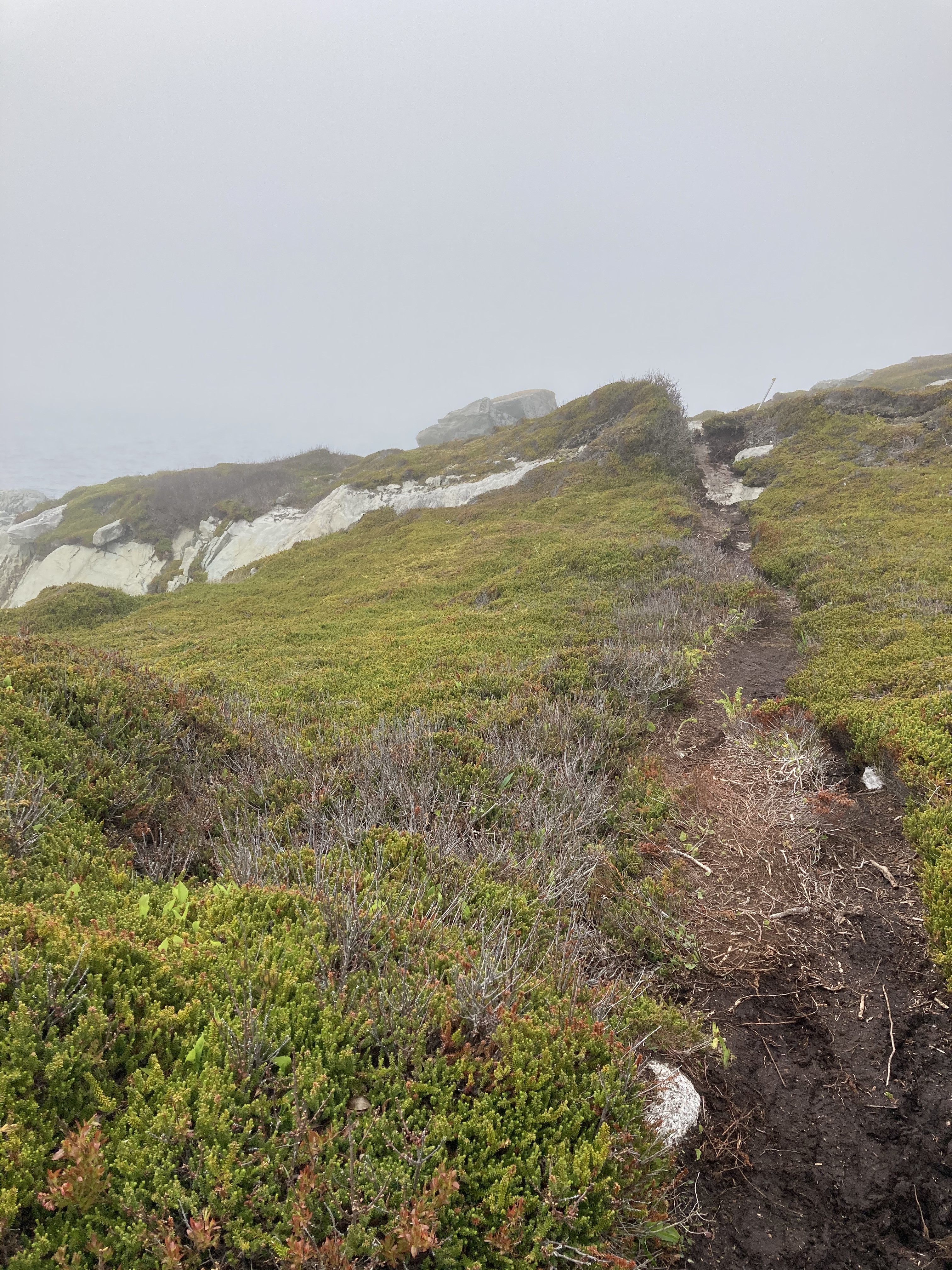 The first part of our beach hike was sunny, warm, along the coast. The views were amazing. I had the pleasure of hiking with a great friend and her daughter. It was exactly the kind of hike that I love. About 1 hour into the hike.. the trail kinda veers into a cut out wooded area. When we came out on the other side, it was like we entered a different time. The sun was gone and the wind had arrived, bringing the cold fog. The temperature had dropped probably by 10c. Luckily we all brought sweaters with us. Honestly I did feel like we stepped back in time. We were now hiking on the edge of sea cliffs on well beaten paths. I was waiting for Jamie Fraser to arrive on his horse to take me back to the warm sunny beach. .. lol.. That did not happen, unfortunately… lol. However we did experience the true change of weather that Nova Scotia has to offer. The weather combined with the terrain, I felt like I was walking in the highlands of Scotland. It was such beautiful scenery.