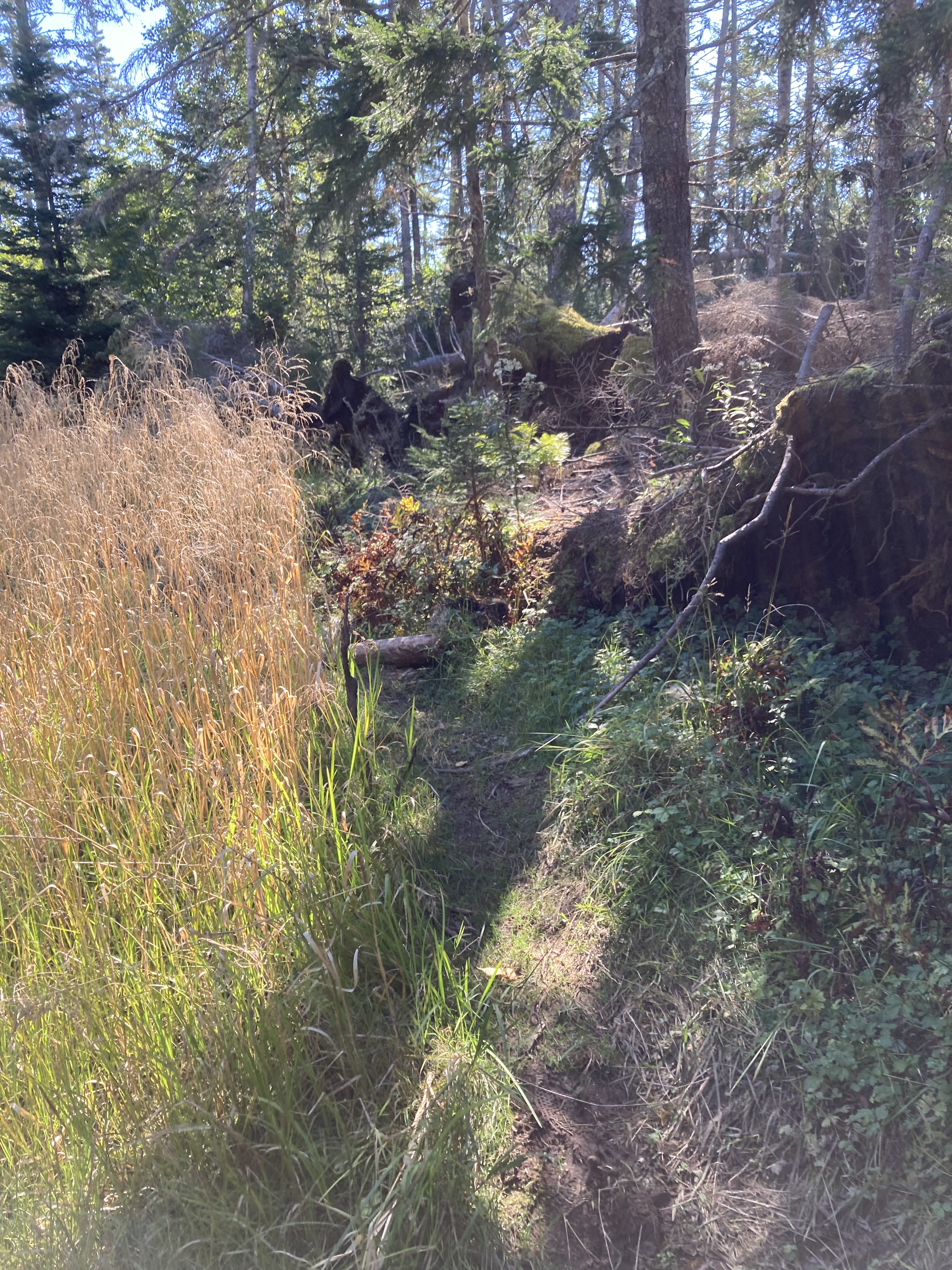 The first leg of the hike was easy. You start at the trail head of Cape Split and hike in at about the 1.5km mark. You will see orange tags that lead to a path the right of the main cape split trail. Follow the orange ribbons until you get to a bench and the start of the descent to the beach.