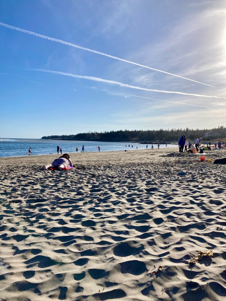 Legit….. this is November 6th, 2022. Here I was sitting on my beach blanket with my daughter and my niece, looking towards the water and had to keep reminding myself it was November 6th. I was not in long pants and a sweater shivering under a blanket, dreaming of the warm June sun. I was wearing a bikini. The sun was warm, people were swimming. Not just running in and out of the water either, they were staying in the water, floating, diving under.
