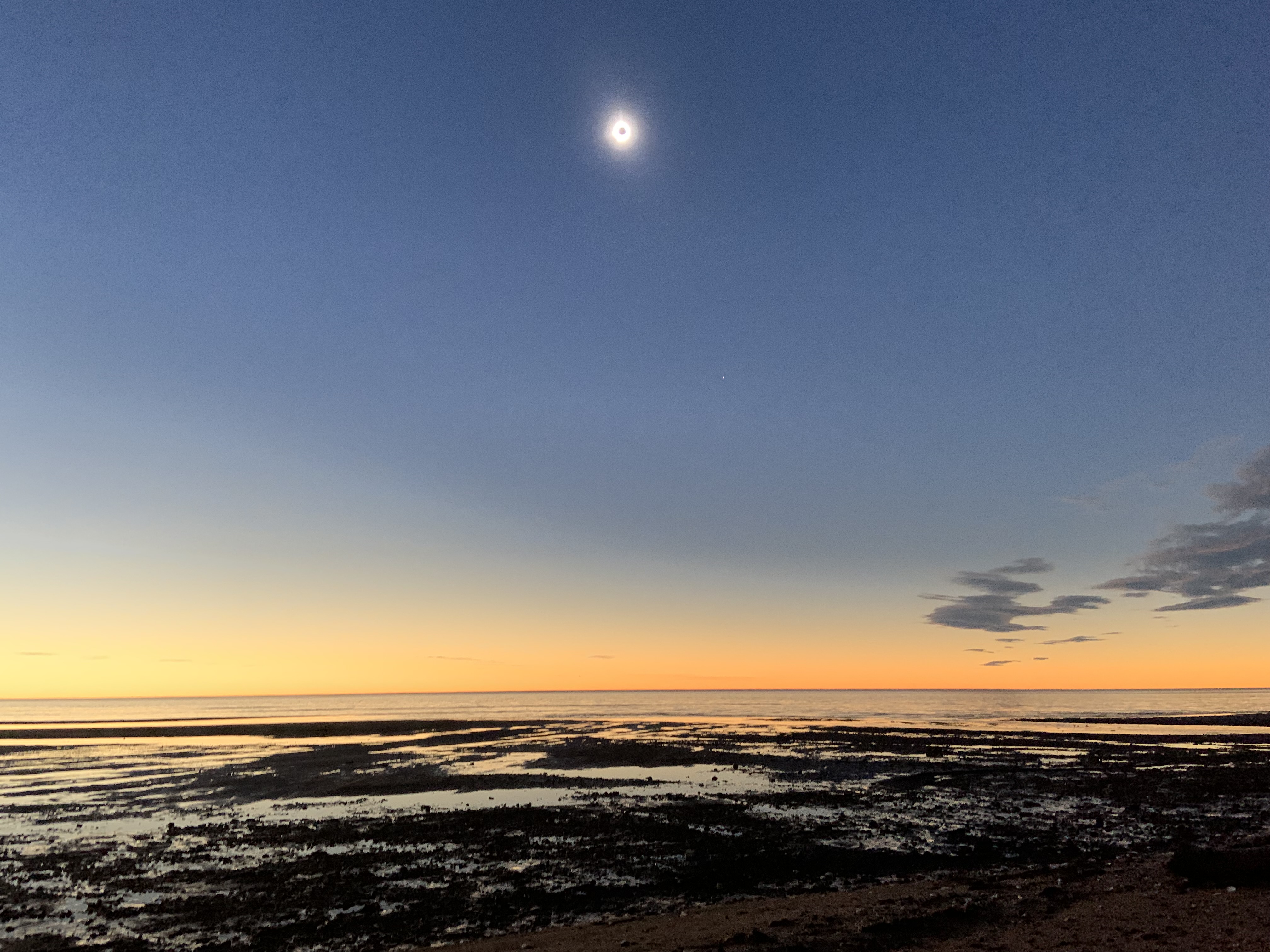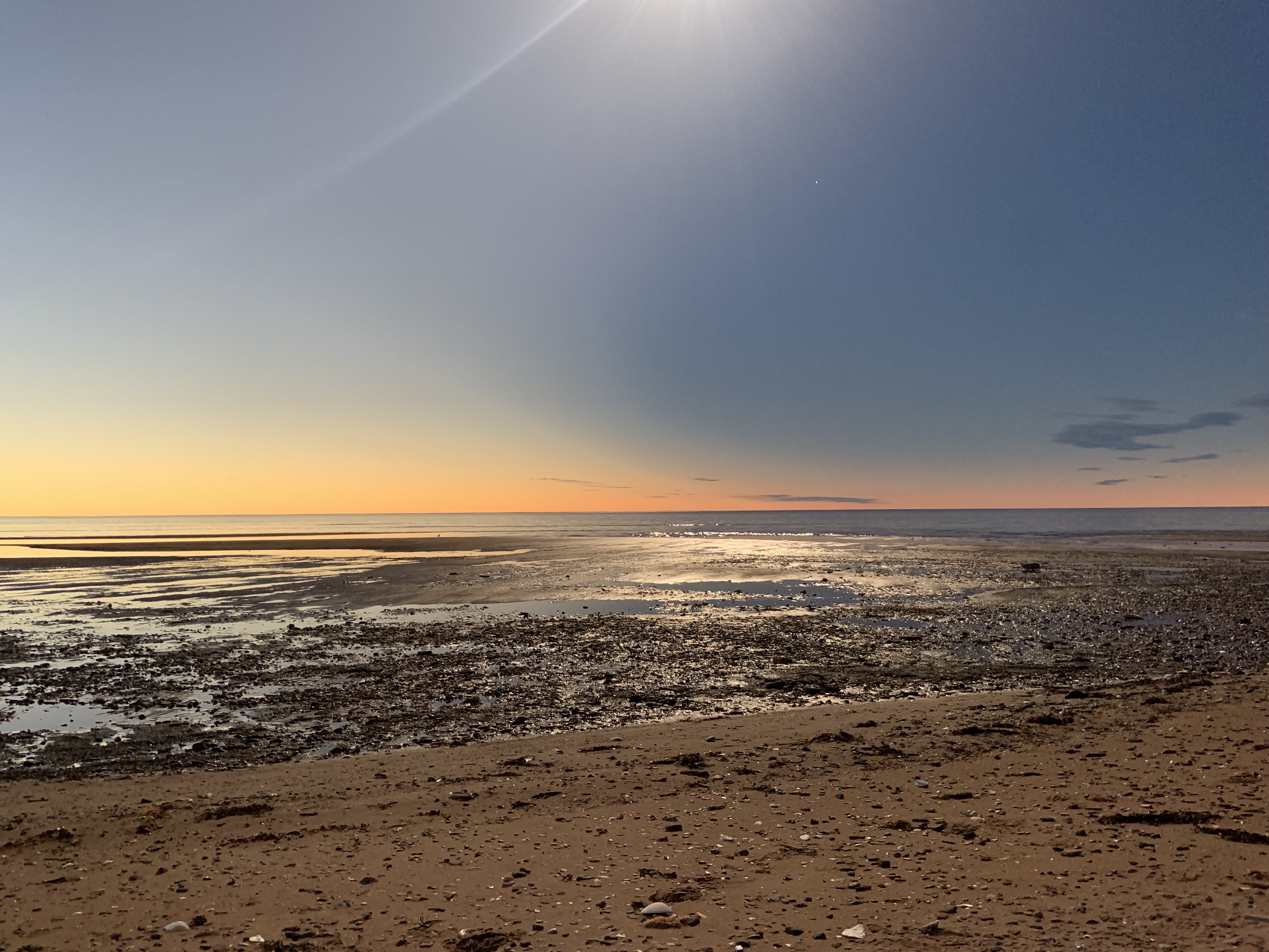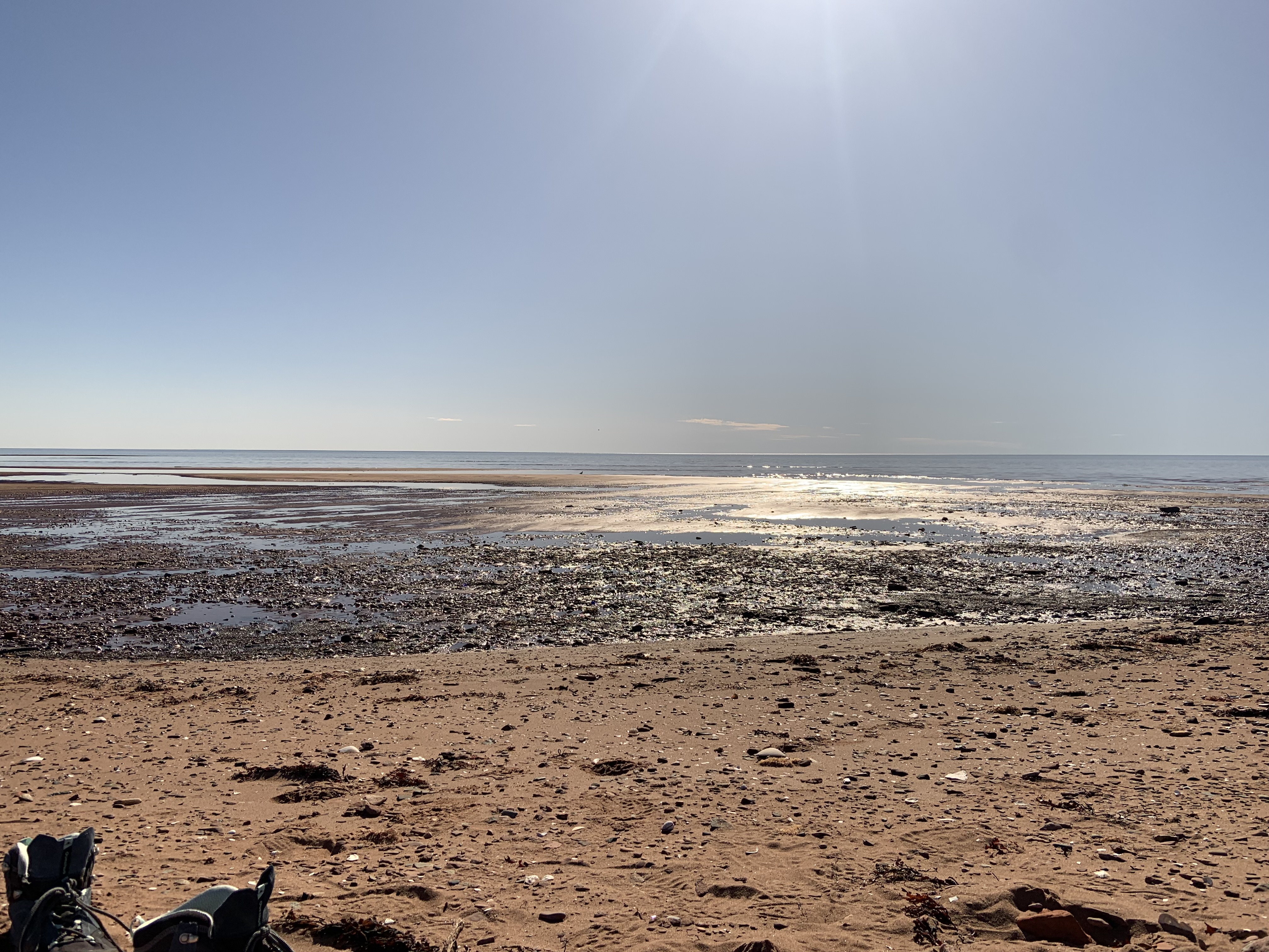 My Daughter and I, made the trip to PEI for the viewing of the Eclipse. There was no better way, in our opinion, to experience the eclipse, then being on the beach. We carefully picked out a spot to view on the west coast of the Island. Originally we were going to go to a beach called Goat beach, but they didn’t allow anyone there until about 3pm. Well…. we arrived at 12noon to make sure we were going to get a good spot. So instead, we drove down the road a little farther and discovered this little piece of sand and water and decided we would set up camp there.